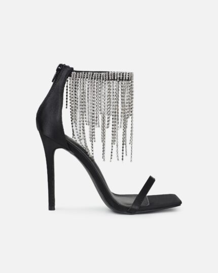 Pookie black satin diamante sandals